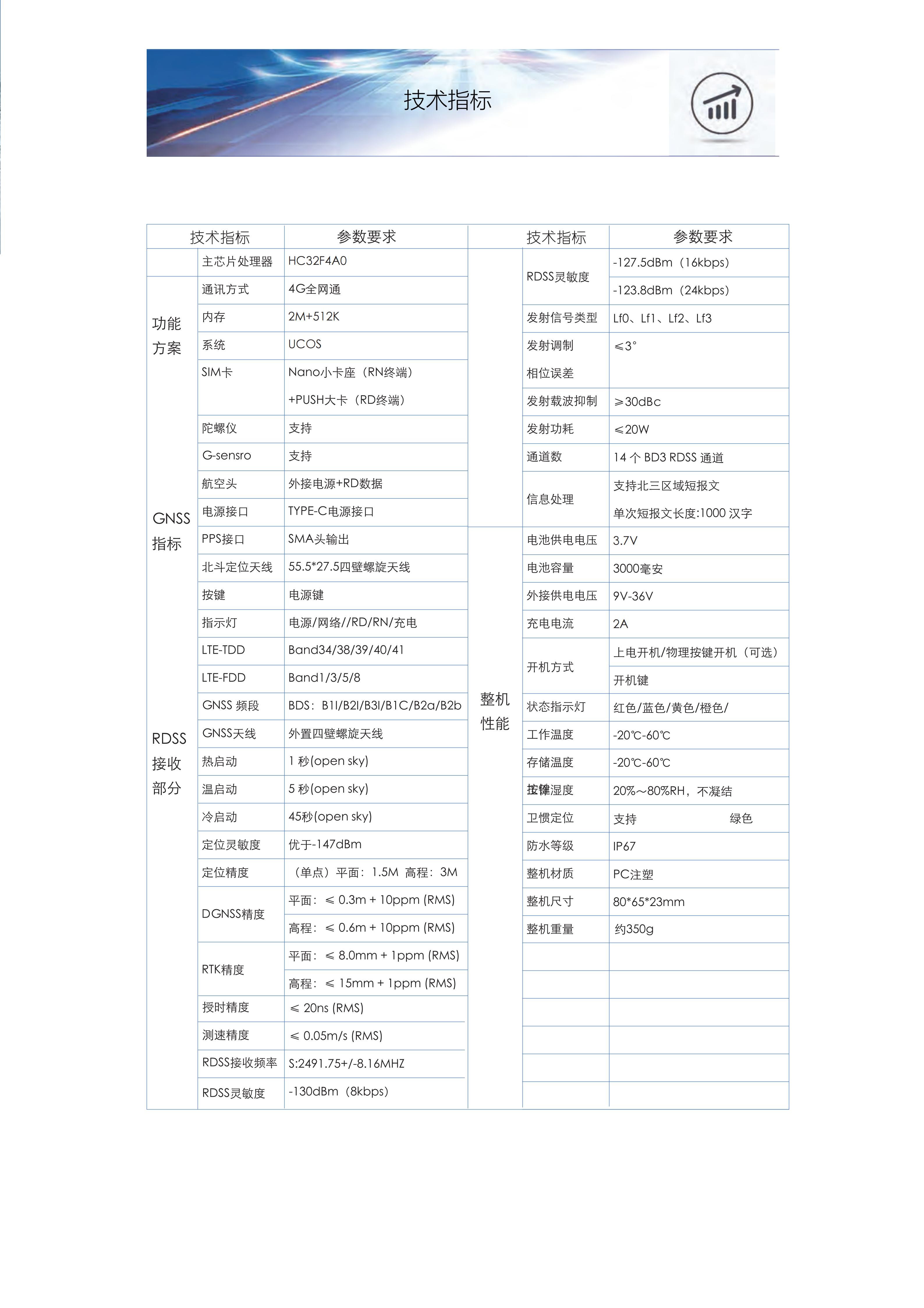 支持4G全网通通讯、支持BDS/GPS/GLONASS全频段北斗三号信号体制定位功能,支持北斗三号短报文通讯功能,支持卫惯融合定位,可用于实现在通信盲区定位、应急通信。